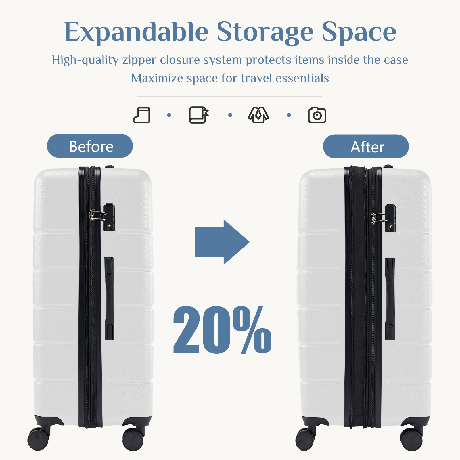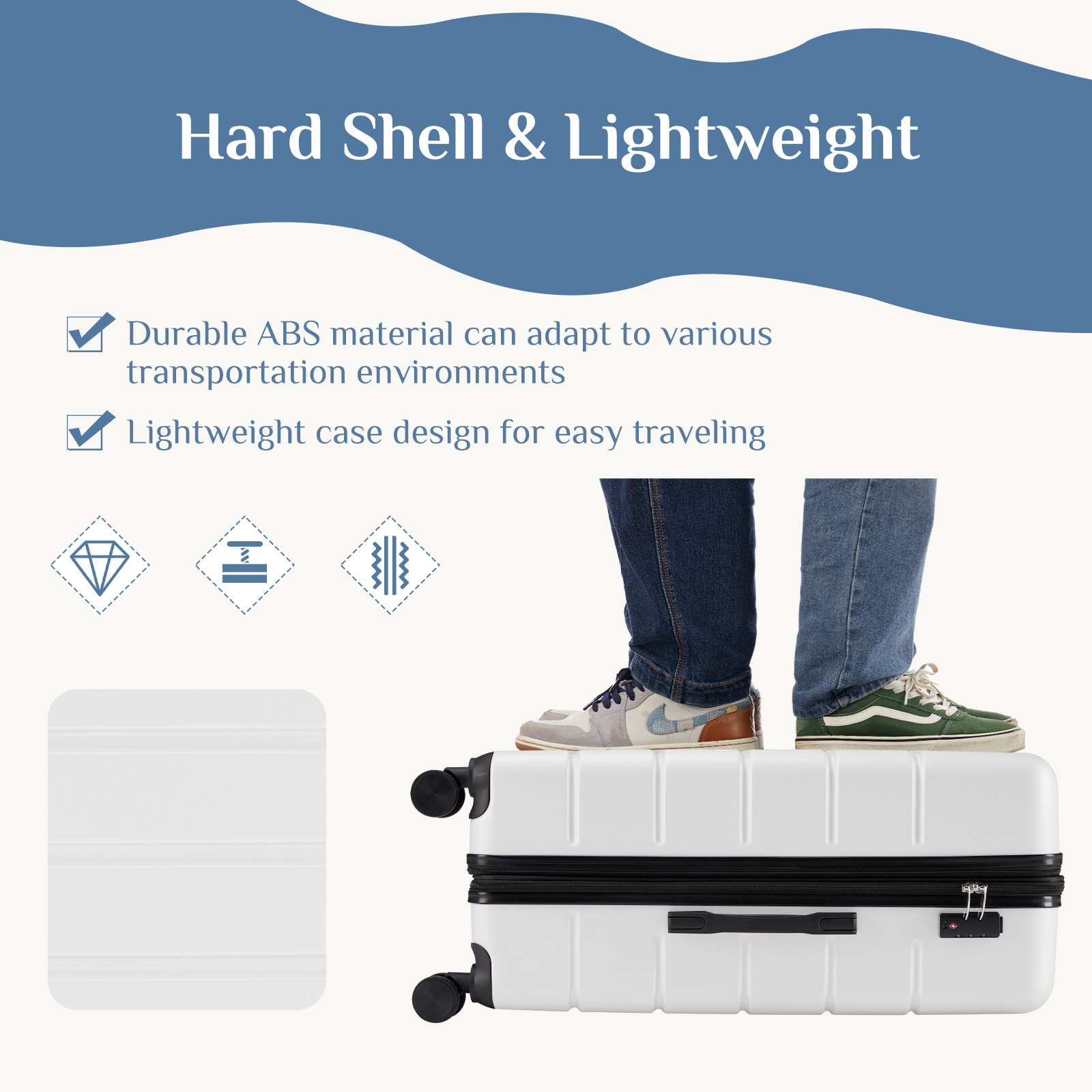 - 【Secure & Stylish】 This suitcase is both reliable and fashionable, featuring a TSA lock, increased security and convenience. The zipper closure ensures effortless closing. The surface of the suit case shell has a small grain texture with multiple horizontal stripes, simple and beautiful.